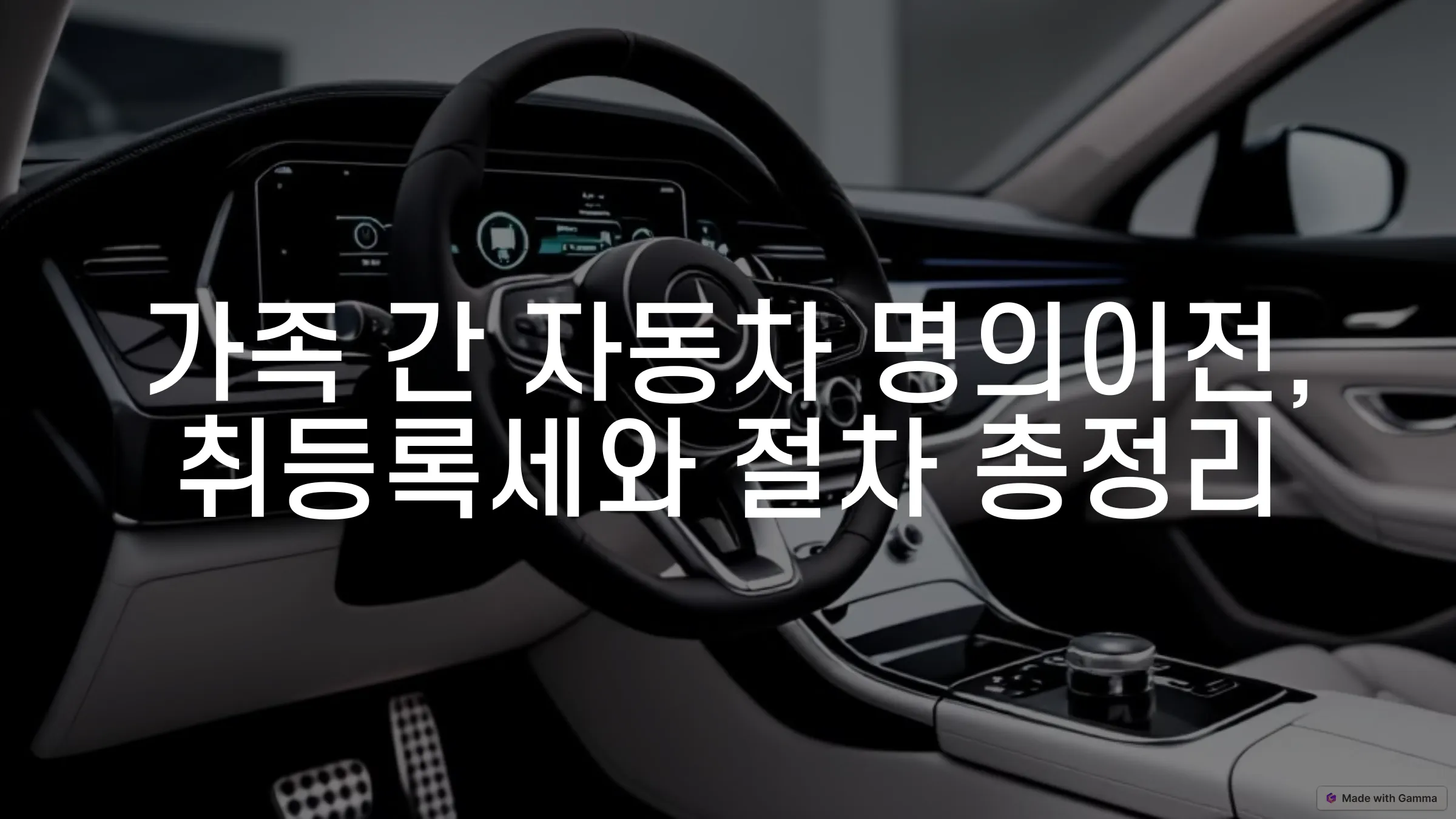 자동차 명의 이전은 특히 가족 간의 경우, 소중한 자산을 물려주는 중요한 과정입니다. 이 포스팅에서는 가족 간 자동차 명의 이전의 절차와 취등록세에 대한 모든 정보를 제공하여 독자들이 쉽게 이해할 수 있도록 돕습니다. 명확한 절차를 파악하면, 예상치 못한 어려움을 줄일 수 있으며, 온라인으로 간편하게 진행할 수도 있습니다. 가족 간의 명의 이전은 일반적인 거래보다 더 간편한 점이 많으니, 이 글을 통해 필요한 정보를 얻어보세요.