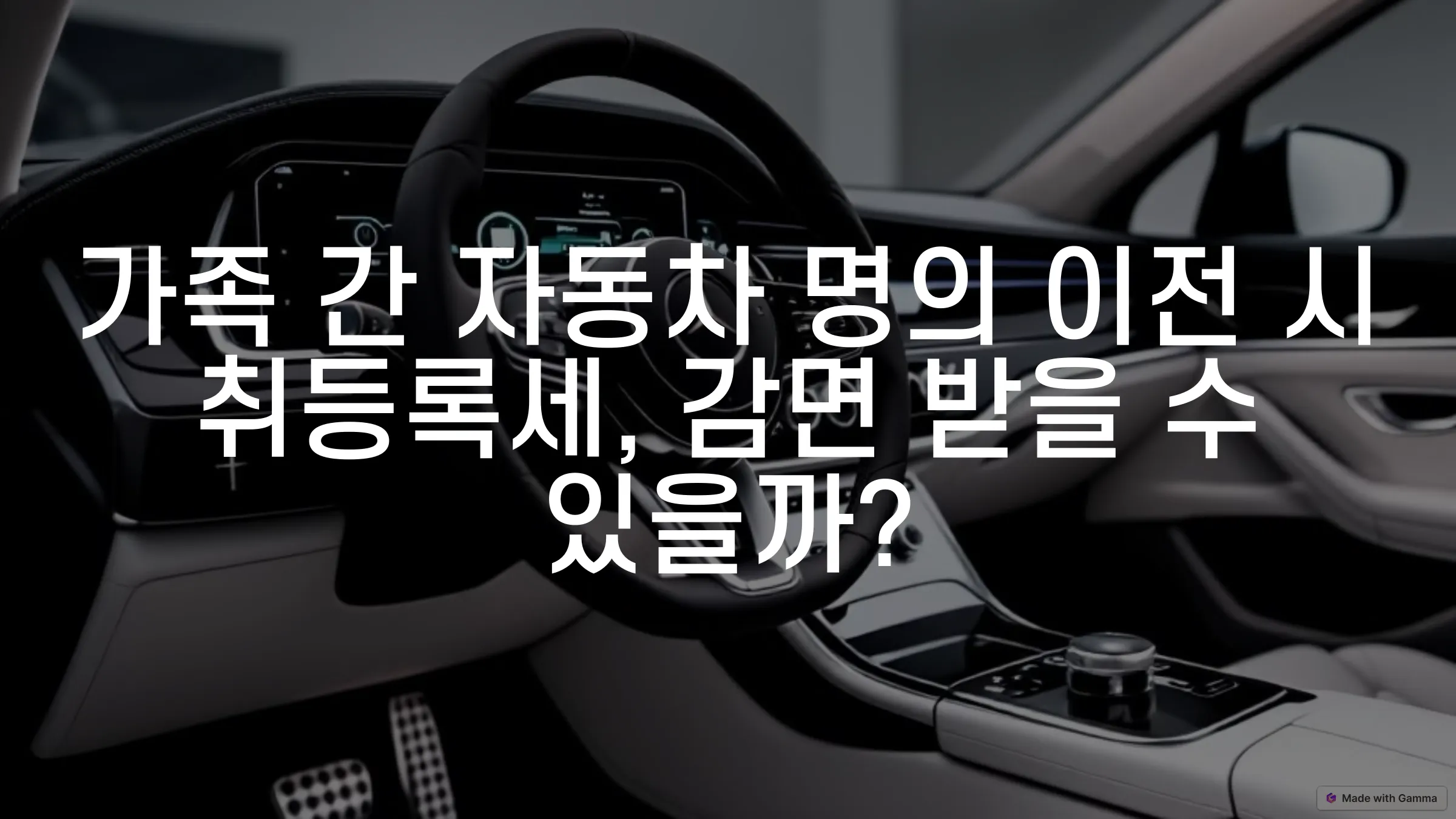 안녕하세요. 자동차 명의 이전은 많은 사람들이 경험하게 되는 중요한 절차 중 하나입니다. 특히, 가족 간의 자동차 명의 이전은 일반적인 거래와는 달리 몇 가지 특별한 규정이 적용됩니다. 이 글에서는 자동차 명의 이전 시 발생하는 취등록세와 관련하여 감면 혜택을 받을 수 있는 방법에 대해 알아보겠습니다. 상세한 정보와 절차를 통해 여러분이 자동차 명의 이전을 보다 원활하게 진행할 수 있도록 돕고자 합니다. 이 글을 통해 가족 간의 자동차 명의 이전에서 발생할 수 있는 비용 절감 방법과 필요한 서류를 파악하여, 경제적 이득을 누릴 수 있기를 바랍니다.