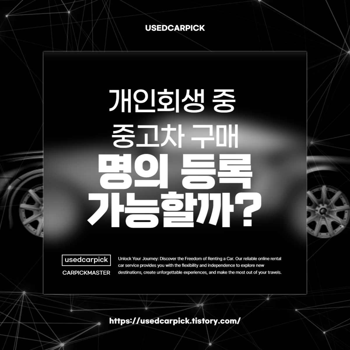 개인회생 중 중고차 구매에 대한 궁금증이 많으시죠? 명의 등록이 가능할지에 대한 여러 질문이 있습니다. 이 글에서는 개인회생 중 중고차 구매에 대한 법적 기준과 실질적인 방법에 대해 자세히 살펴보겠습니다.
