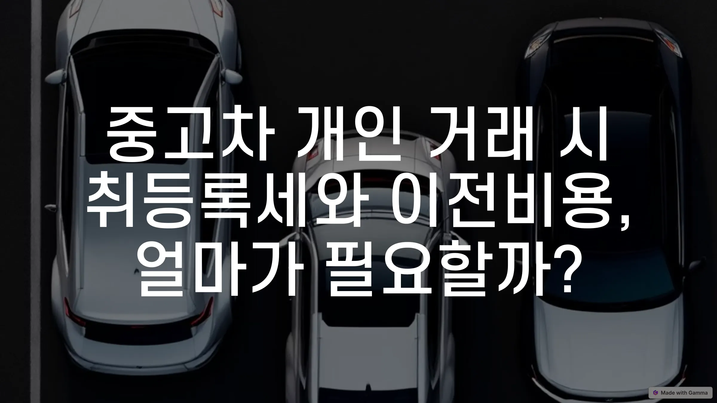 안녕하세요~ 중고차 개인 거래를 계획하고 계신가요? 그렇다면 취등록세와 명의 이전 비용에 대한 이해는 필수적입니다. 이 글을 통해 중고차 거래 시 발생하는 각종 비용을 명확히 알고 준비함으로써, 예상치 못한 지출을 줄일 수 있습니다. 특히, 취등록세는 거래 금액에 따라 달라지므로 정확한 계산이 필요합니다. 이 글을 통해 필요한 정보를 모두 확인하고, 중고차 거래를 보다 수월하게 진행하세요.
