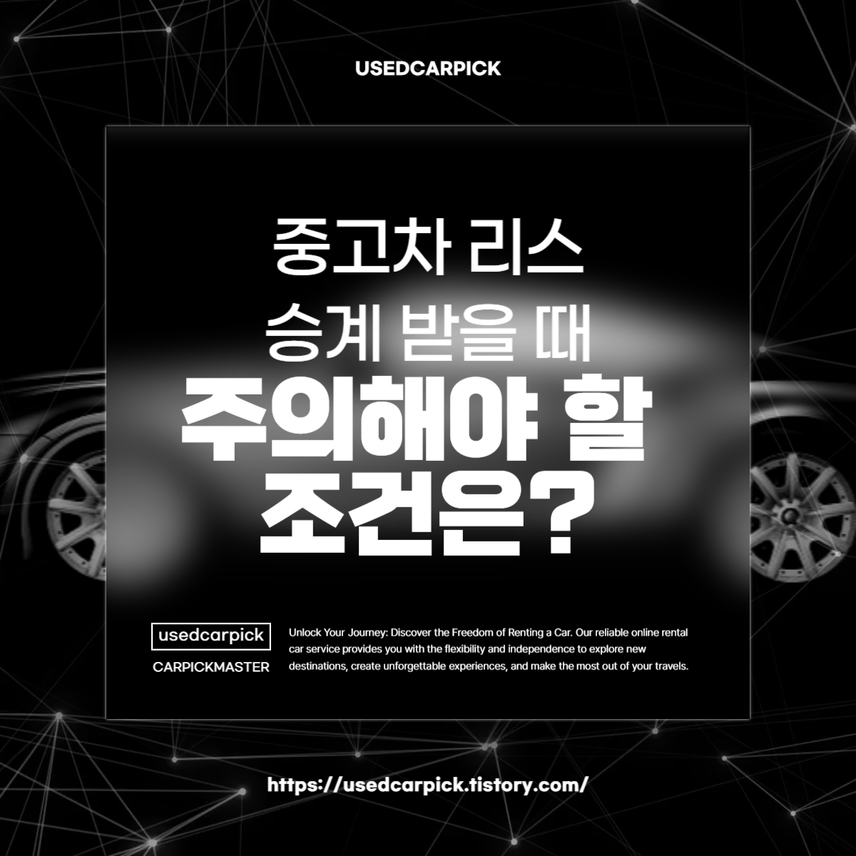 중고차 리스 승계 시 반드시 확인해야 할 여러 가지 조건이 있습니다. 이를 통해 불필요한 비용을 방지할 수 있습니다.