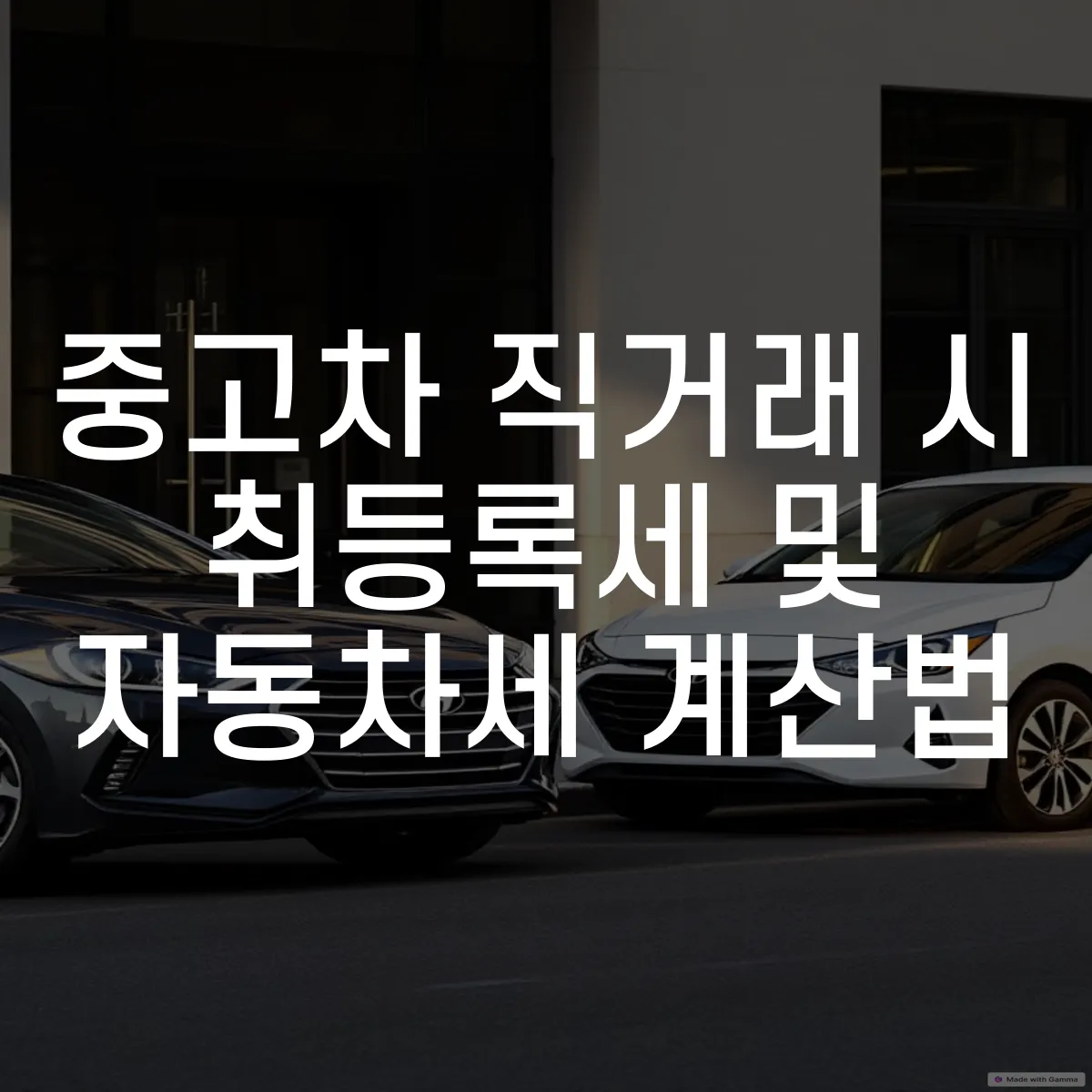 중고차를 직거래로 구매하는 경우, 많은 소비자들이 취등록세와 자동차세에 대한 정확한 정보를 알고 싶어합니다. 이 글을 통해 중고차 직거래 시 필요한 취등록세와 자동차세 계산법을 정확하게 이해할 수 있습니다. 특히, 취등록세는 차량 가격의 약 6.8%로, 이와 관련된 규정과 절세 팁을 숙지하면 상당한 비용 절감 효과를 누릴 수 있습니다. 따라서 이 글을 읽으면 중고차 구매 시 발생할 수 있는 세금 관련 고민을 덜고, 보다 현명한 소비를 할 수 있는 정보를 얻을 수 있습니다.