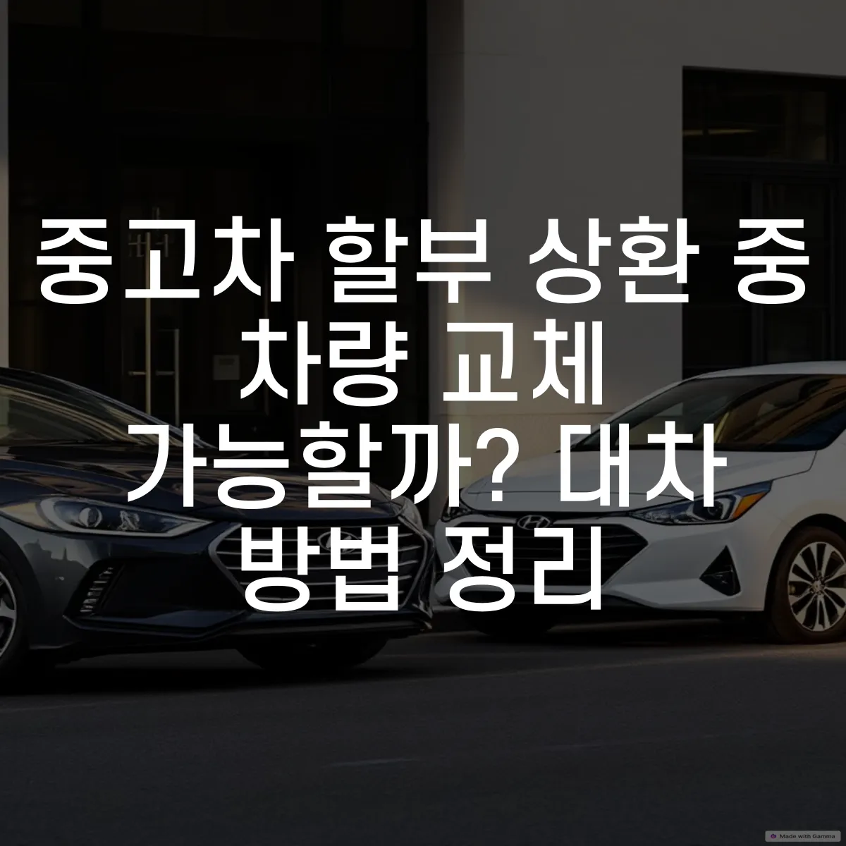 요약하자면, 중고차 할부 상환 중 차량 교체는 절차가 복잡할 수 있으나, 올바른 정보를 통해 가능합니다. 교체를 원하시는 분들은 반드시 현재 차량의 시장 가치와 대차 방법을 검토하세요.