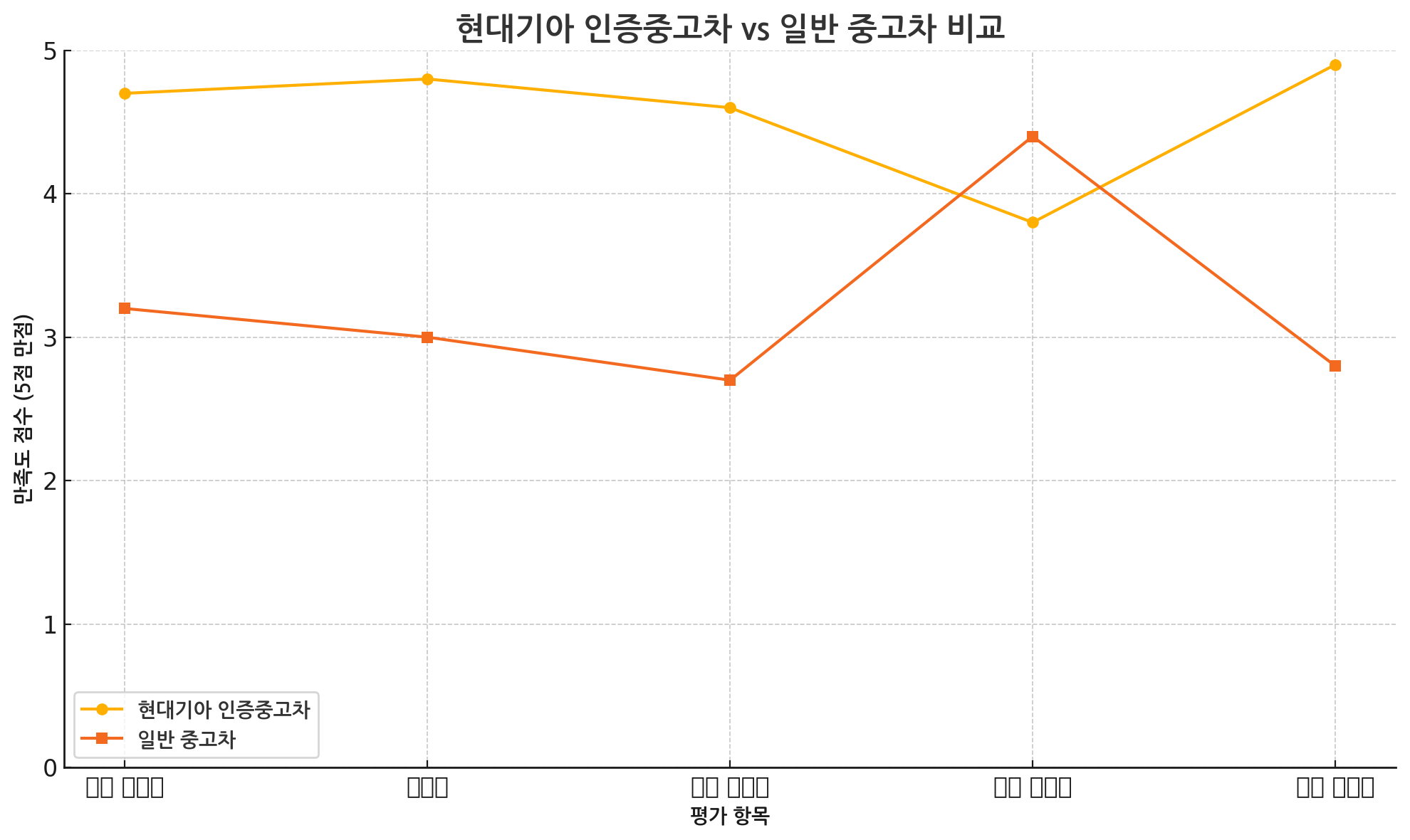 현대기아 인증중고차 vs 일반 중고차 그래프 비교